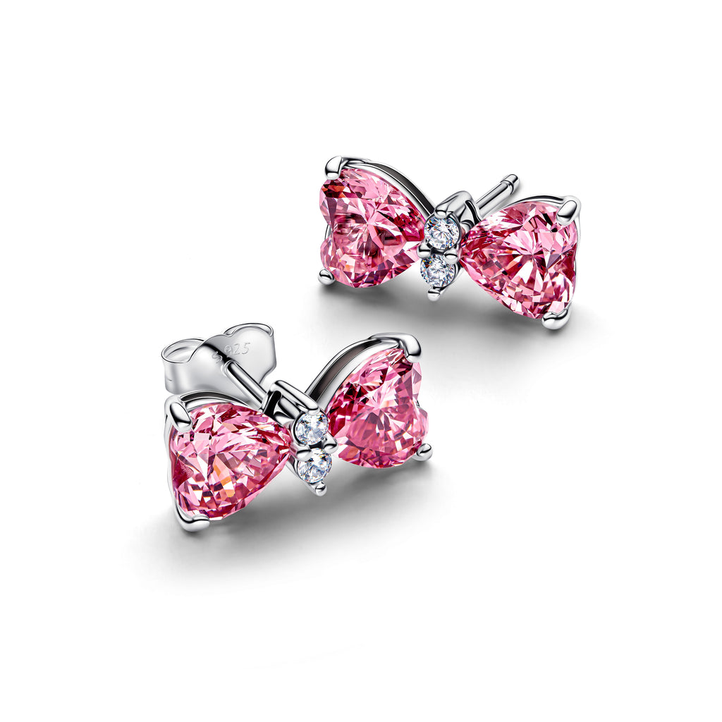 Some ties never come undone. Get wrapped up in our bow stud earrings, made of sterling silver and set with heart-shaped pink and clear cubic zirconia for a delicate symbol of grace.