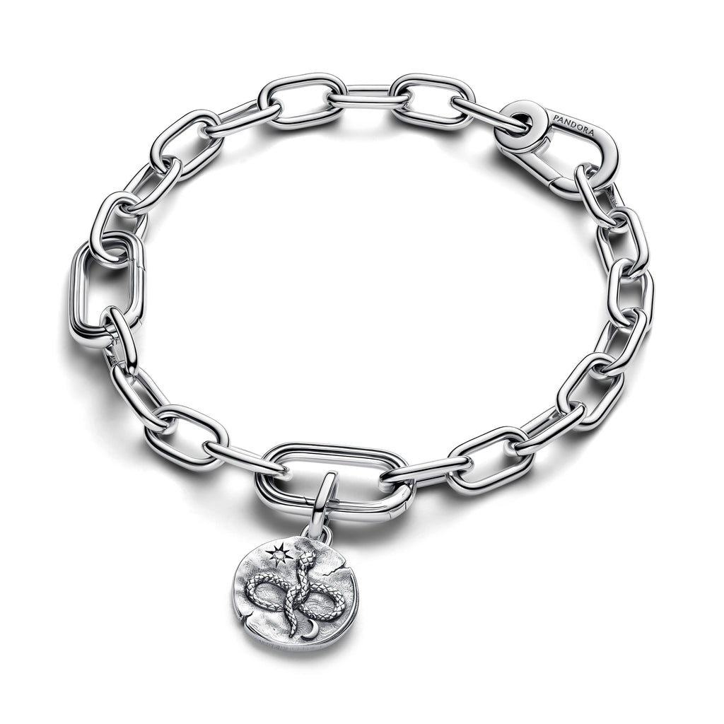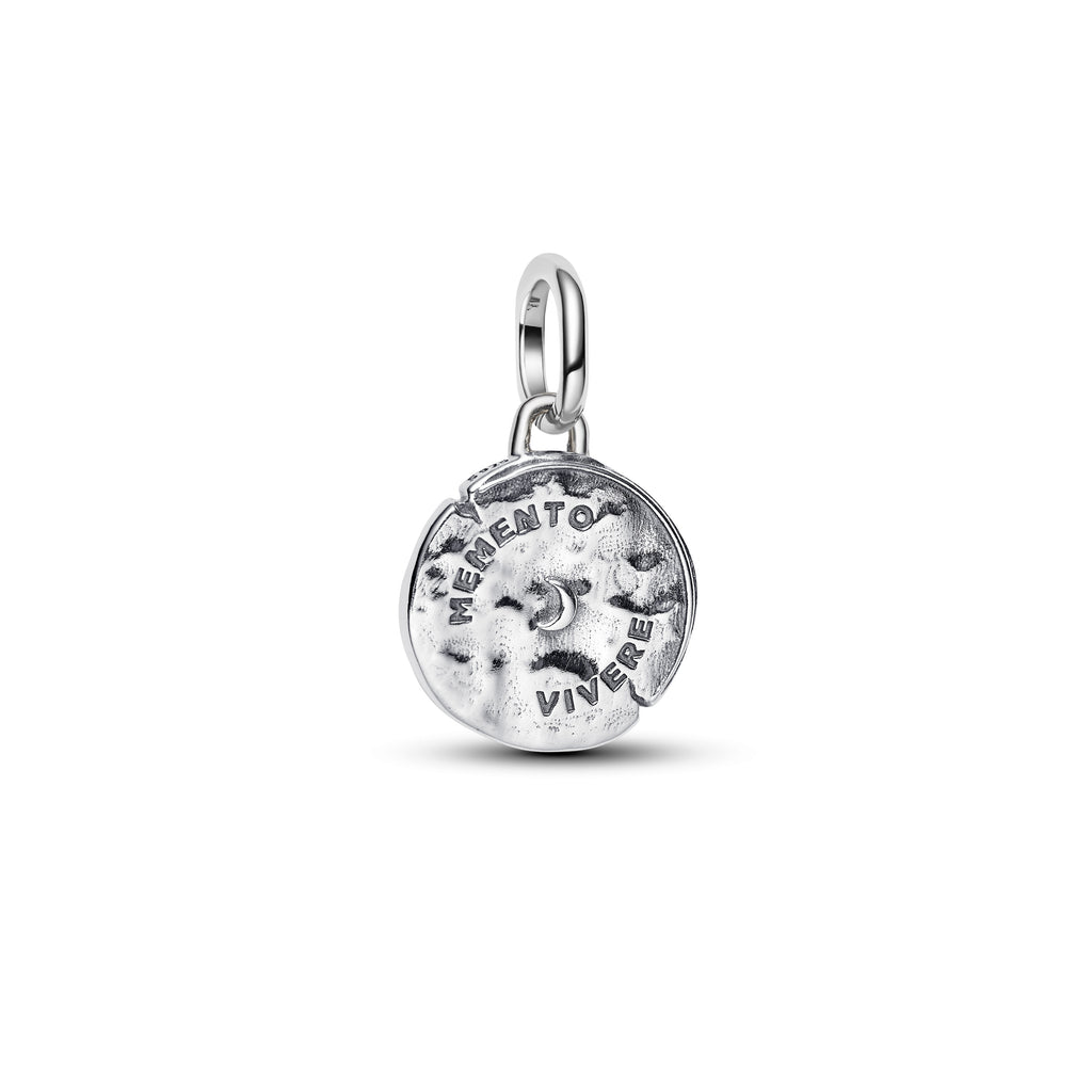 A symbol of renewal, coiled in sterling silver. Inspired by ancient coins, this powerful medallion features a flush-set clear cubic zirconia and is engraved with 'MEMENTO VIVERE' — Latin for 'REMEMBER TO LIVE'.