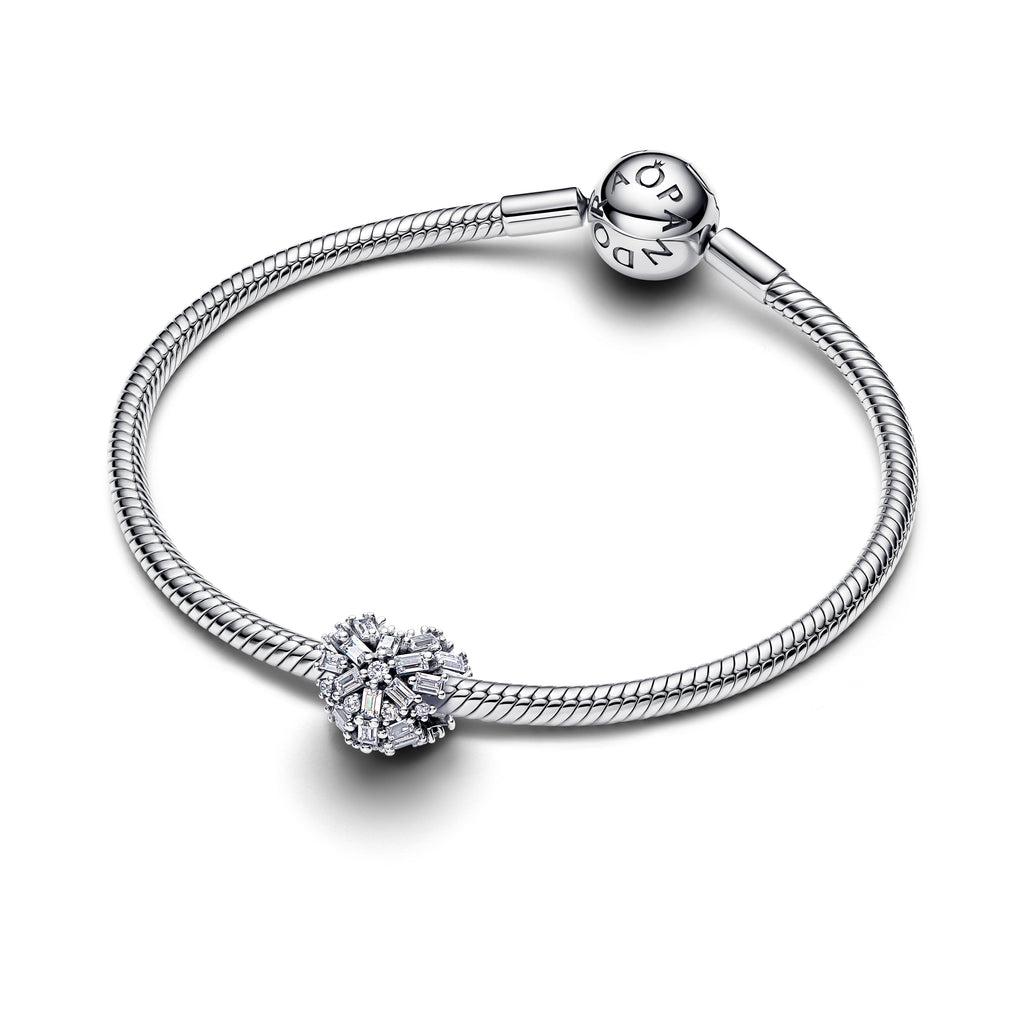 Spread love wherever you go with our heart-shaped charm. Crafted in sterling silver and embellished with clear cubic zirconia stones, it’s a charm that radiates warmth and energy.